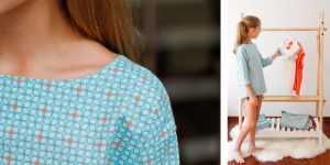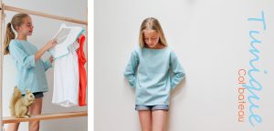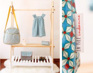 Tunique, robe, pochette, trousse ou sac, ce tissu est un plaisir à coudre… La petite robe cousue en deux ans est destinée à une adorable petite Nila, quant à la tunique ci-dessous, elle a rapidement trouvé preneuse… Toujours difficile de choisir entre les deux coloris.. azur ou turquoise?